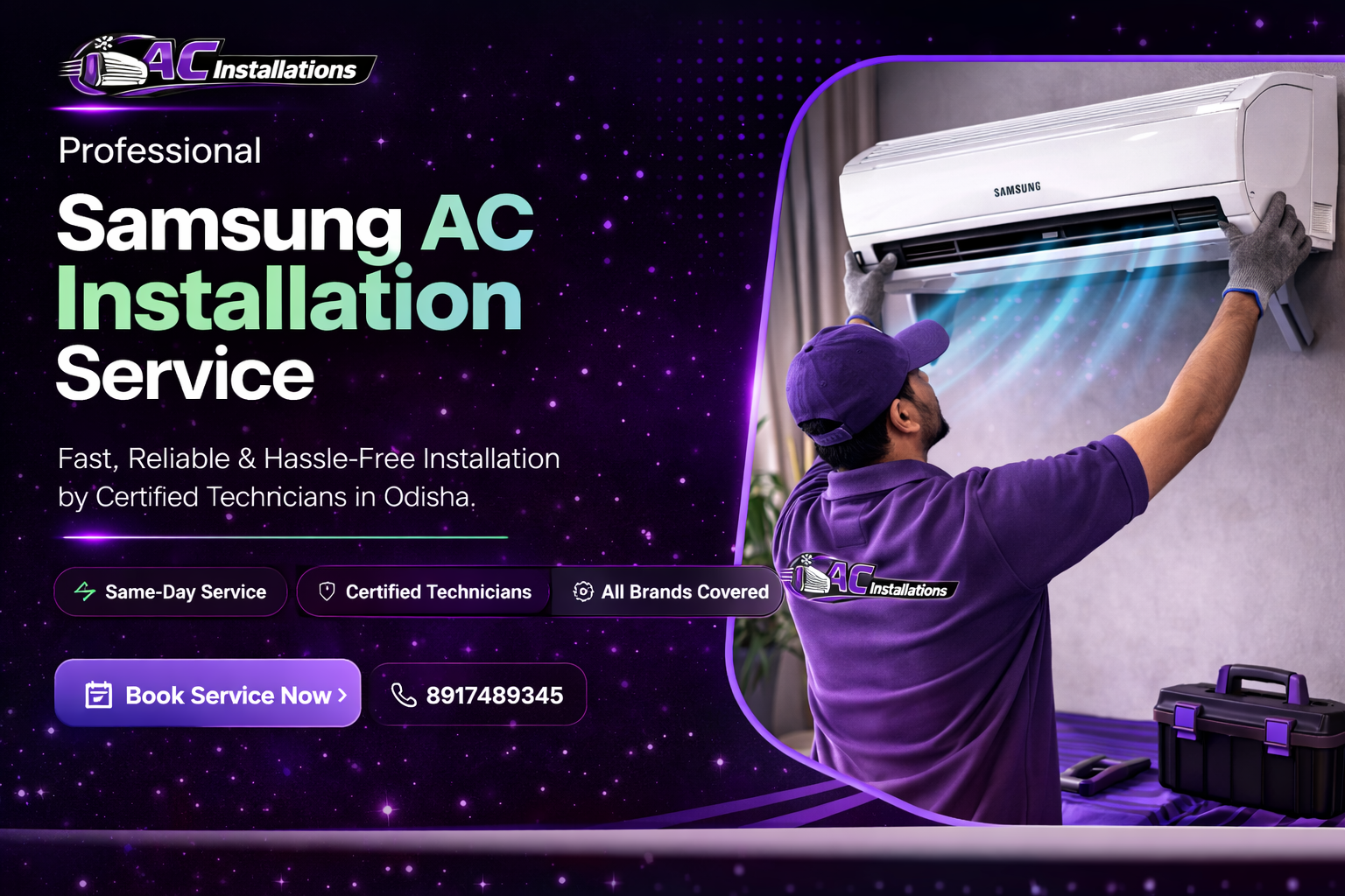 Professional Samsung AC installation service in Bhubaneswar by Ac Installations. Fast, safe, and affordable service by experts. Call 8917489345.