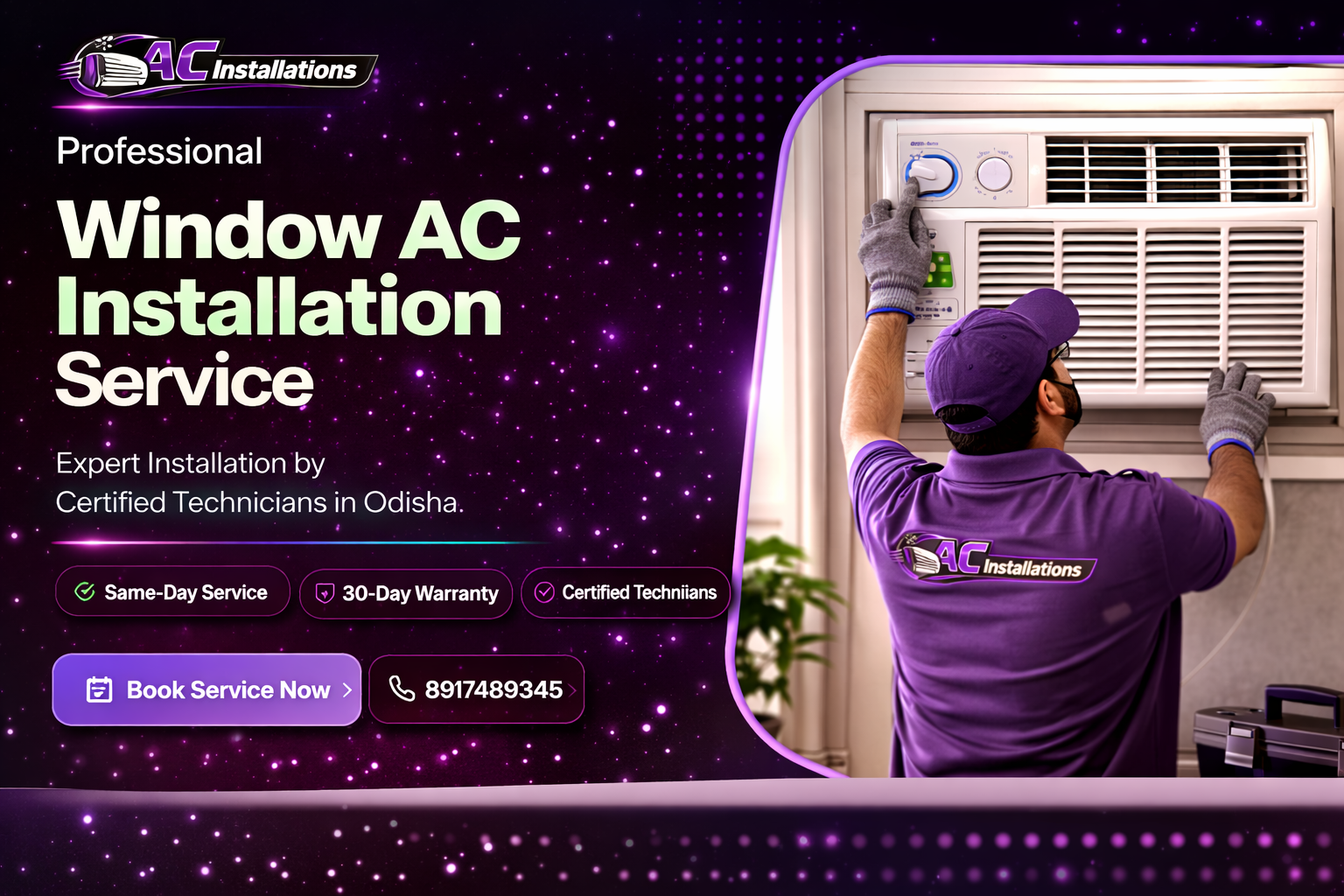 Get reliable Window AC installation service in Bhubaneswar by Ac Installations. Fast, affordable, and expert service. Call 8917489345 today.